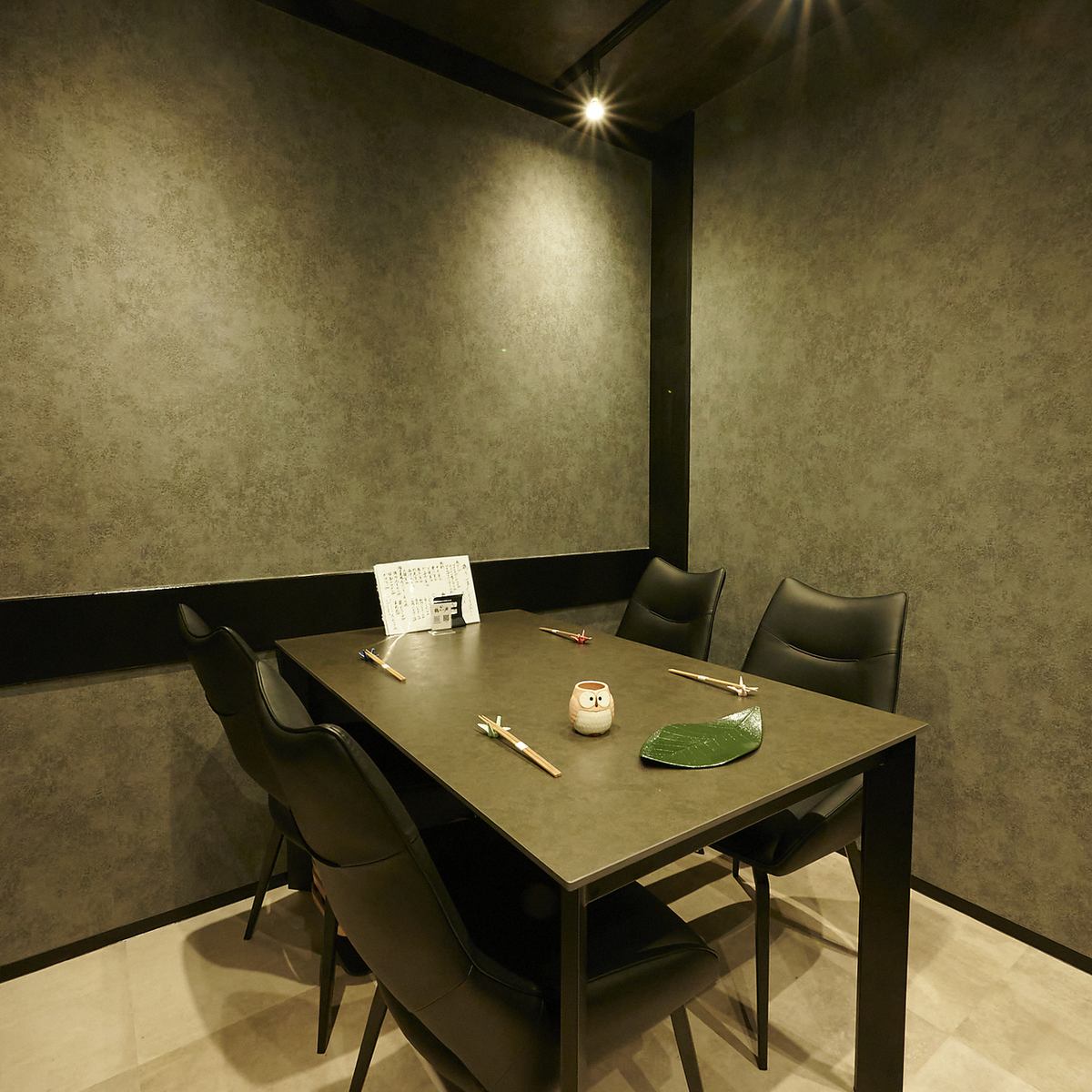 【黒を基調としたシックな雰囲気のお店】いい意味で串揚げ屋らしくない落ち着いた空間が魅力です◎テーブル席は2卓あり、3名様から最大10名様までご利用いただけます。ゆったりと落ち着いてお食事をされたい方、グループでの飲み会や女子会などに最適です。串揚げと美酒を囲んで大切な方とのお食事をお楽しみください♪